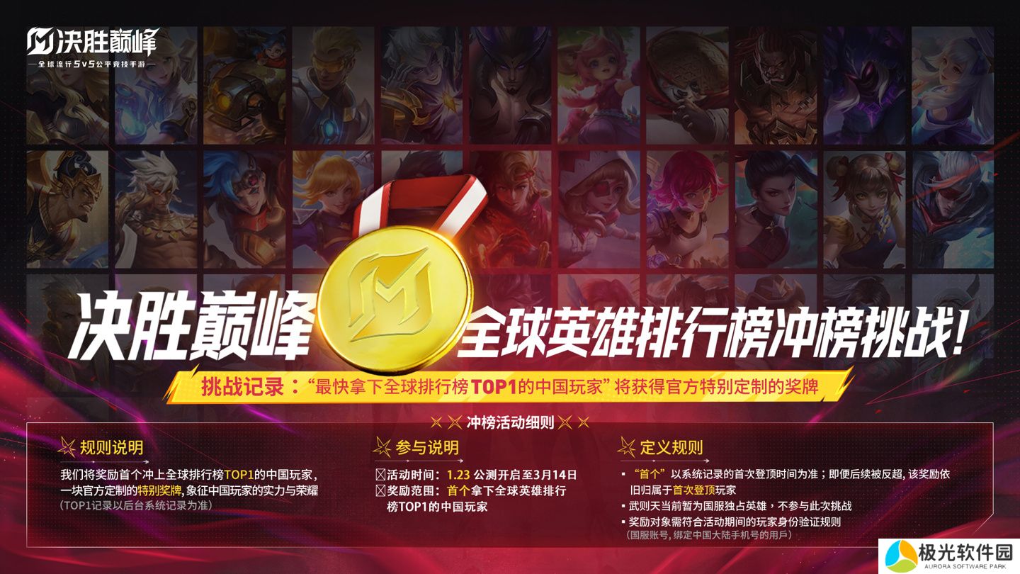 本站注意到,为了激励中国玩家,《决胜巅峰》还推出了“全球英雄排行榜冲榜挑战”活动,将为首个登上全球英雄排行榜 TOP1 的中国玩家送上特别定制奖牌。