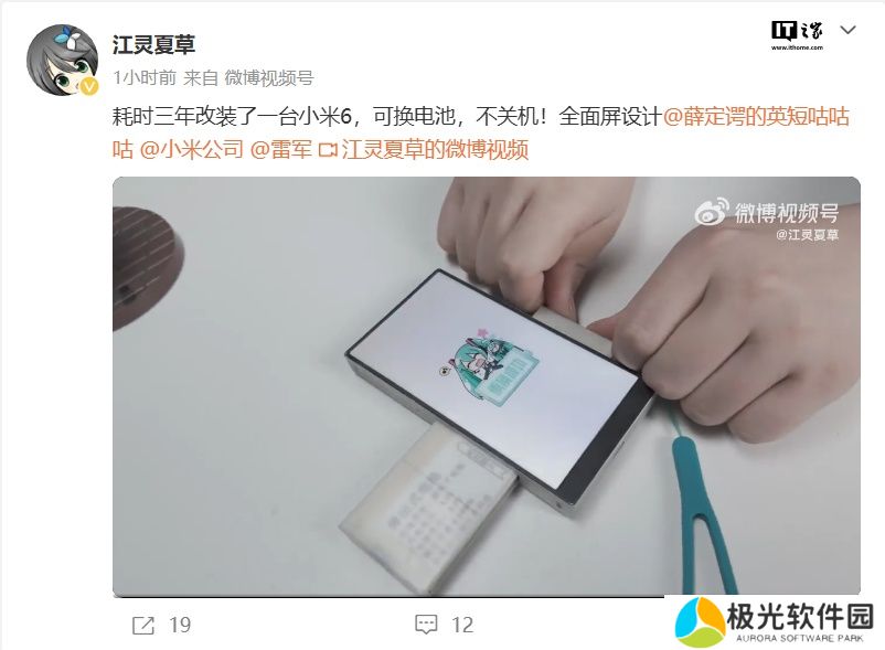 技术宅 UP 主“江灵夏草”今日晒出视频,耗时三年改造出了一款全面屏小米 6,甚至采用了可换电池设计,而且换电池不用关机。