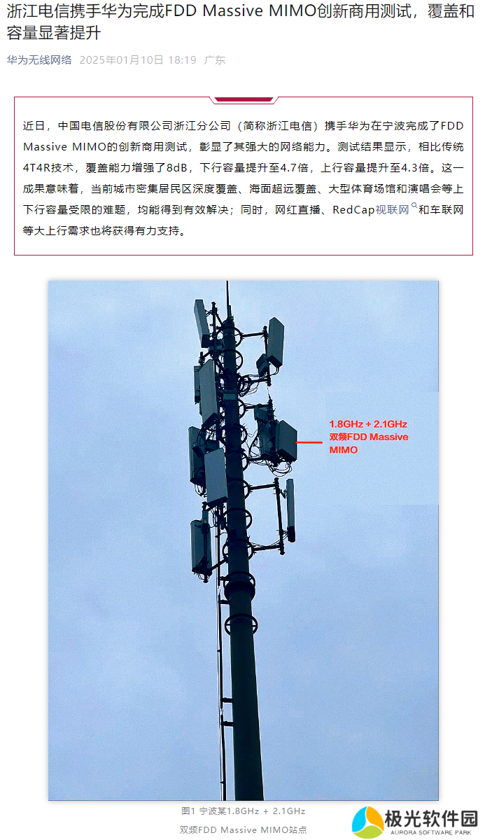 本站 1 月 11 日消息,华为官方昨日宣布,联合浙江电信近日在宁波完成了 FDD Massive MIMO 的创新商用测试。