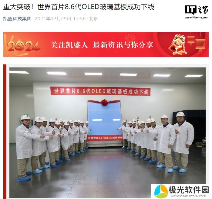 本站 12 月 29 日消息,据凯盛科技集团官方,今日,凯盛集团所属中建材玻璃新材料研究总院和蚌埠中光电自主研发生产的世界首片 8.6 代 OLED 玻璃基板产品 在安徽蚌埠成功下线。