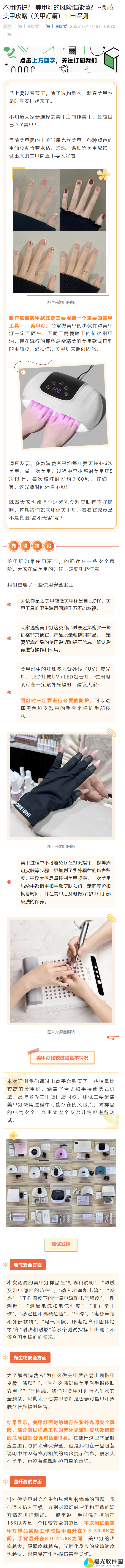 本站注意到,上海市消保委今日发布评测文章,对 20 款美甲灯进行检测发现,这些产品都不符合国家电气安全标准,而且多个美甲灯多个测试指标不符合国标规定。更为严重的是,20 款美甲灯均存在紫外光源安全风险,其中 18 款样品工作时,紫外光源对皮肤及眼睛的危险级别达到高危险级别,2 款为中度危险级别。