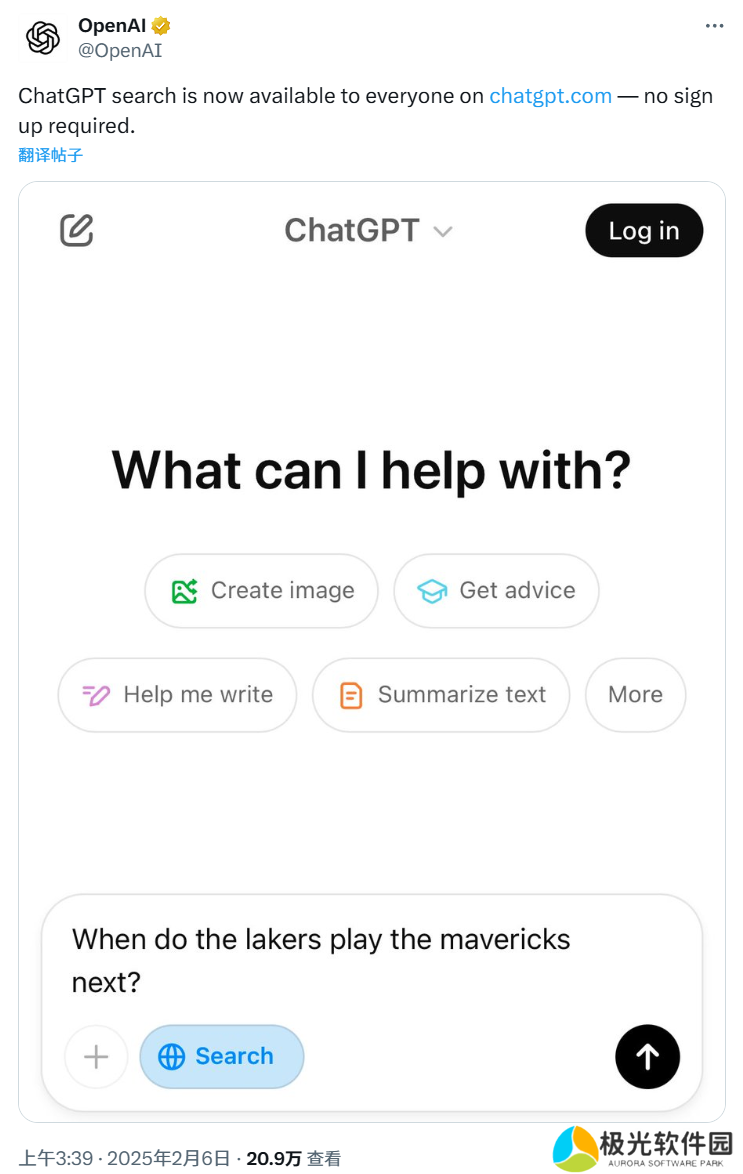 据本站了解,OpenAI 最初于去年 10 月向付费用户提供了搜索引擎功能,并于同年 12 月向所有用户开放。如今,用户无需账户即可使用该功能,这意味着 ChatGPT 的搜索将直接与谷歌和必应等传统搜索引擎展开竞争。