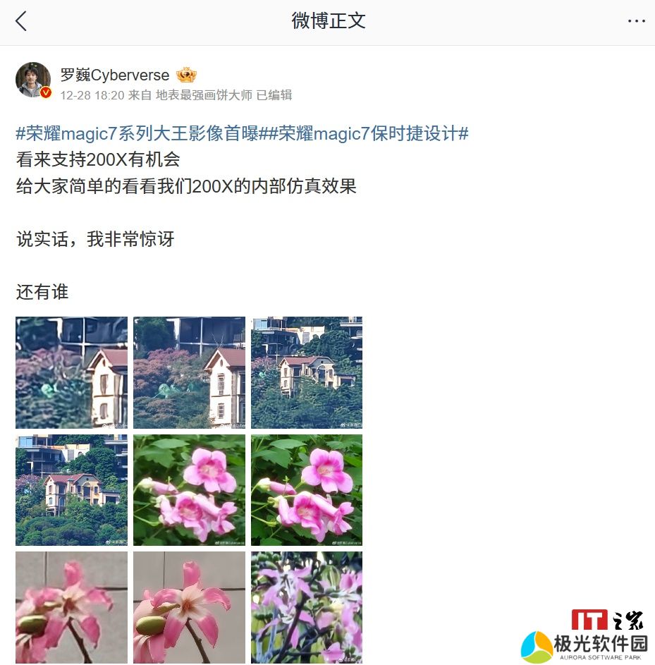 本站 12 月 29 日消息,荣耀首席影像工程师罗巍昨日分享了手机“200X”变焦的内部仿真效果,并称“看来支持 200X 有机会”。