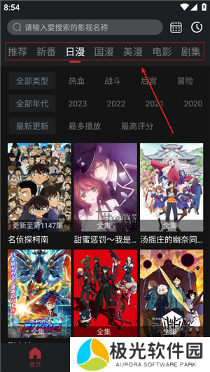 1、软件包含很多种类的视频,有智能推荐、新番、日漫、国漫、美漫、电影、剧集等。选择对应的分类之后还可以选择类型和年代等,快速查找想看的视频。